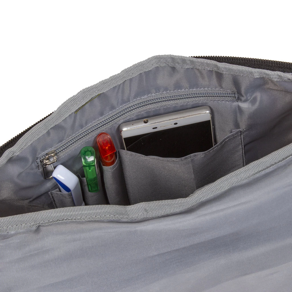 Een vak voor je laptop, een vak voor je telefoon, een vak voor je pennen, een vak voor je kleine spullen, deze tas heeft echt plek voor alles! Een compacte, lichte tas dus waar je alles in kan meenemen. Aan de voorkant van de tas zit een groot vak waar je nog van alles in kan doen. Daarnaast zit er bovenop de tas ook nog een extra vak met ritssluiting.