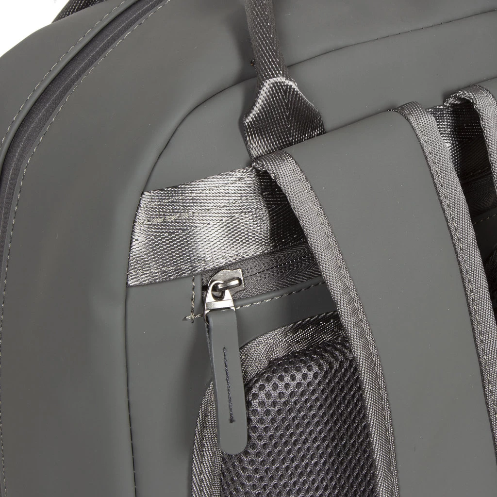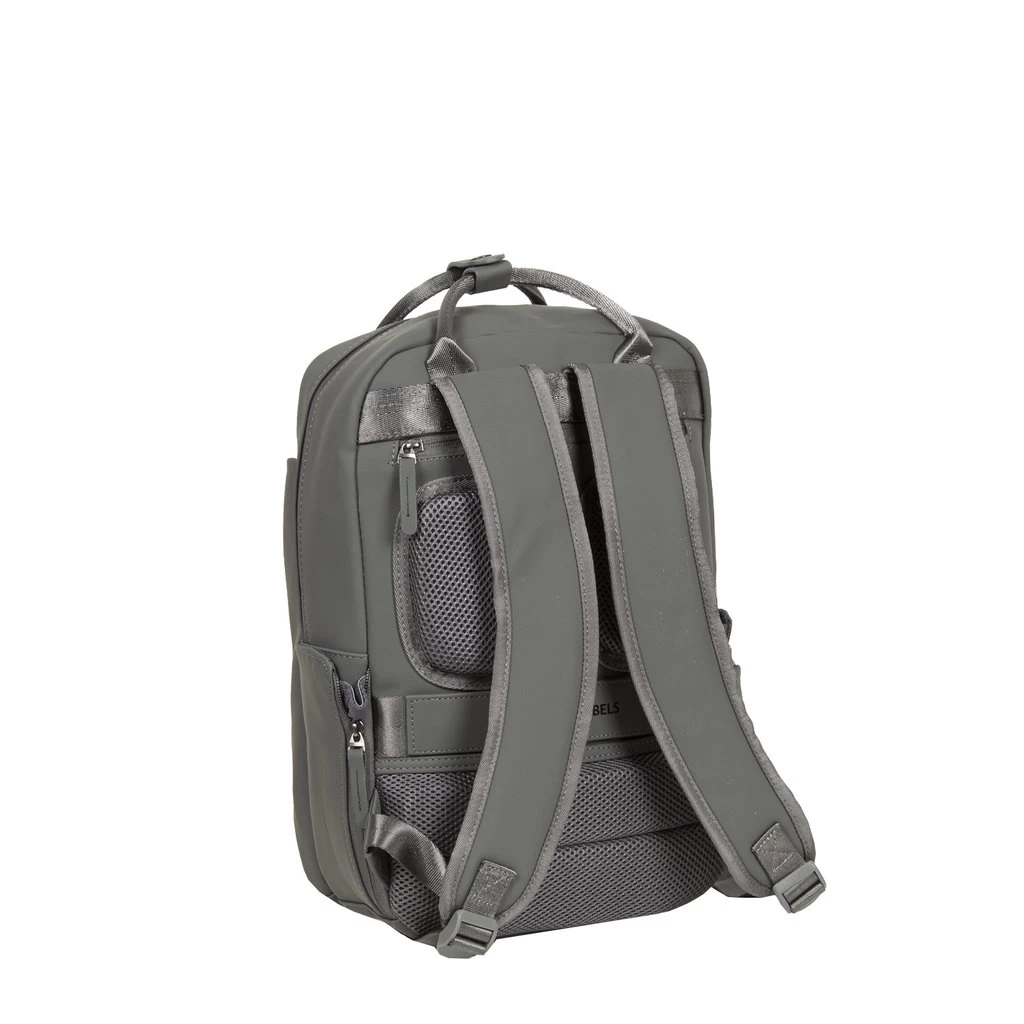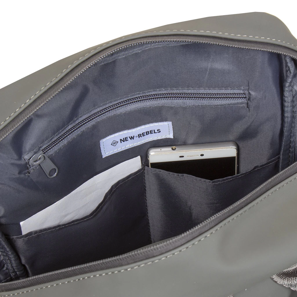 Deze waterafstotende rugzak uit de Harper serie van New Rebels. De tas is gemaakt van waterproof PU materiaal wat de tas waterbestendig maakt ook ideaal voor de wintersport of als laptoprugzak voor op de fiets. De rugzak beschikt over een ruim hoofdvak die afsluitbaar is met een waterkerende ritssluiting. In het hoofdvak met ritssluiting zit een ritsvak, een telefoonvak, een insteekvak en een laptopvak voor een 14,1″ laptop. Op de voorzijde van de tas zitten een horizontaal ritsvak en een verticaal ritsvak. In het horizontale ritsvak bevinden zich twee insteekvakken, twee pennenvakken en een ritsvak. Aan de zijkanten bevinden zich twee inteekvakken waar bijvoorbeeld een waterflesje en/of blikje in passen. De tas beschikt over 2 verstelbare rugbanden, hierdoor kan u de tas altijd op de gewenste lengte dragen. Het rugpaneel en de schouderbanden zijn gewatteerd, hierdoor draagt je de tas zeer comfortabel.
