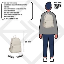 Deze waterafstotende rugzak uit de Harper serie van New Rebels. De tas is gemaakt van waterproof PU materiaal wat de tas waterbestendig maakt ook ideaal voor de wintersport of als laptoprugzak voor op de fiets. De rugzak beschikt over een ruim hoofdvak die afsluitbaar is met een waterkerende ritssluiting. In het hoofdvak met ritssluiting zit een ritsvak, een telefoonvak, een insteekvak en een laptopvak voor een 13″ laptop. Op de voorzijde van de tas zitten een horizontaal ritsvak en een verticaal ritsvak. In het horizontale ritsvak bevinden zich twee insteekvakken, twee pennenvakken en een ritsvak. Aan de zijkanten bevinden zich twee inteekvakken waar bijvoorbeeld een waterflesje en/of blikje in passen. De tas beschikt over 2 verstelbare rugbanden, hierdoor kan u de tas altijd op de gewenste lengte dragen. Het rugpaneel en de schouderbanden zijn gewatteerd, hierdoor draagt je de tas zeer comfortabel.