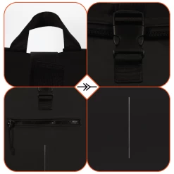 LAPTOP – Het hoofdvak bevat een gewatteerd laptopvak (36×27 cm), dat overeenkomt met een 15,6-inch laptop. Het laptopvak is af te sluiten. Laptopaccessoires kunnen gemakkelijk worden meegenomen in de kleine vakken aan de binnen- en buitenkant van de rugzak die sluiten met een rits.