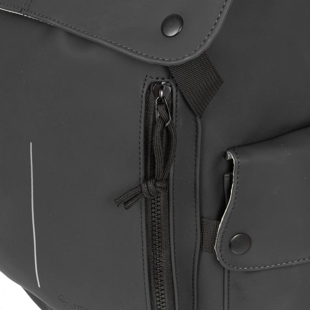 Lunchpakketten voor het hele gezin passen makkelijk in deze ruime rugtas met vele opbergmogelijkheden. Dus handig voor een dagje eropuit of voor naar school of college. Het rugpaneel en de verstelbare schouderbanden zijn gevoerd en ademend. Ideaal wanneer je kilometers moet maken met deze tas op je rug. De tas draagt hierdoor soepeler en zorgt ervoor dat je niet snel gaat zweten. Het hoofdcompartiment sluit makkelijk met een trekkoord en beschikt over een gewatteerd laptopvak (27x27cm) afsluitbaar met klittenband. In de gladde zilverkleurige voering bevindt zich ook nog een ritsvakje voor kleine spullen. Op de voorkant van de tas zit een insteekvak (4 cm diep) met ritsvak erop. Hier overheen valt de omslag die je afsluit met twee drukknopen. Op de zijkanten van de tas is gedacht aan twee vakken voor bijvoorbeeld een kleine paraplu, beker of telefoon. De verstevigde bodem biedt extra bescherming aan je spullen en zorgt ervoor dat de tas makkelijk is neer te zetten. Het waterafstotende materiaal is makkelijk schoon te maken en maakt de tas bestand tegen een kleine regenbui.