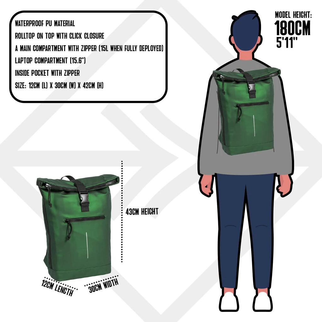 New Rebels ® Mart – Rolltop – Rugzak – Waterafstotend – Metallic Green – Large II – Rugtas