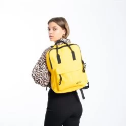 Deze trendy waterafstotende lichtgewicht rugtas is ideaal voor dagelijks gebruik en makkelijk schoon te maken. Draagt zeer comfortabel door de gewatteerde en verstelbare schouderbanden en vulling in het rugvlak. De twee handvatten op de bovenkant geven een extra coole look en zorgen ervoor dat de rugzak ook als gewone tas vastgehouden kan worden en makkelijk op te hangen is. De tas heeft een ruim opbergvak met insteekvak voor bijvoorbeeld je tablet/ laptop (<13 inch) en wordt afgesloten door een stevige ritssluiting. Er zit een extra ritsvak aan de voorkant voor kleinere spullen. Verkrijgbaar in verschillende mooie kleuren. Geweldige keus!