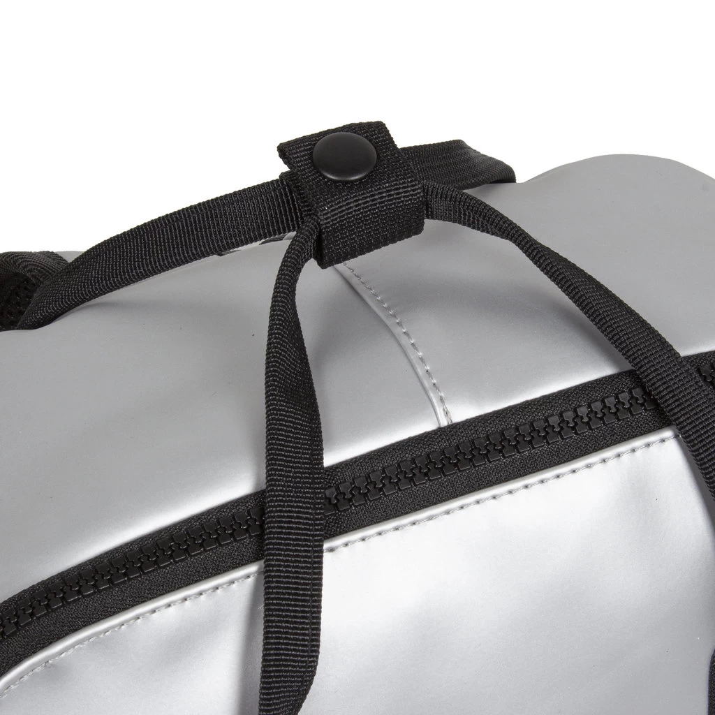 - Een hoofdvak met stevige kunststof ritssluiting en zilverkleurige binnenkant met insteekvak