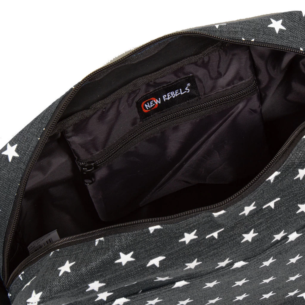 New Rebels ® Star25 – Medium SchoudertasA5 – Crossbodytas Met Flap- Grijs – With Stars