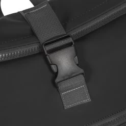 Deze trendy waterafstotende rugtas ziet er niet alleen stoer uit, maar heeft ontzettend veel opbergruimte en draagt super comfortabel. Comfortabel door het lichtgewicht en het gewatteerde rugvlak en de gewatteerde verstelbare schouderbanden. Veel opbergruimte door het ruime hoofdvak dat eenvoudig te vergroten of verkleinen is door het oprol gedeelte aan de bovenkant. Hierdoor kun je tot 10 cm meer ruimte creëren. Het hoofdvak is afsluitbaar met een stevige rits en een schuif/klik sluiting. In het hoofdvak zit een extra ritsvak en een gevoerd laptopvak (36×27 cm). Op de voorkant van de rugzak zit ook een extra ritsvak, handig voor kleine spullen waar je snel bij moet kunnen. Het stevige handvat zorgt ervoor dat de tas eenvoudig op te pakken en op te hangen is. Fashionable functioneel!