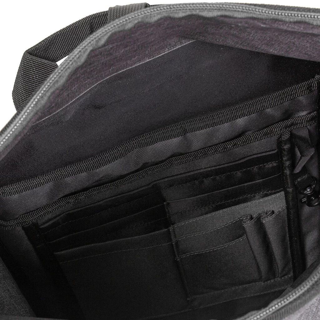 - Hoofdvak, voorvak, (gewatteerd) laptopvak en 8 kleine vakken