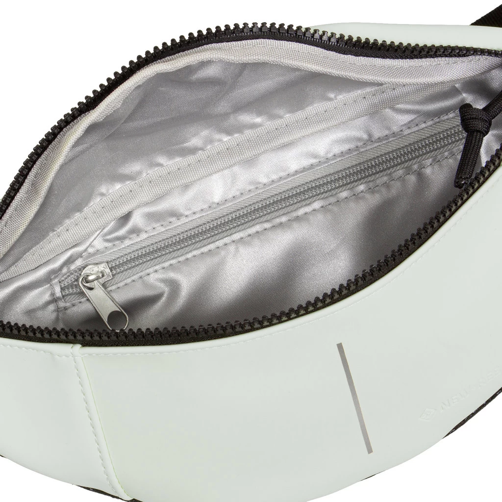 Helemaal terug van de jaren 80! Behalve praktisch en comfortabel is een heuptasje ook stijlvol. De heuptas is een veelzijdige tas, omdat je hem op verschillende manieren kunt dragen. Met de verstelbare bandjes draag je hem op de heupen, taille en zelfs crossbody. Perfect voor een festival, discotheek of op reis. Je hebt je handen vrij en je draagt je reisbenodigdheden veilig tegen je lichaam en je kunt er makkelijk bij. En je hebt een gratis extra handbagage. Een heuptasje kan door zowel mannen als vrouwen worden gedragen. Deze Mart waist bag met zwarte rits is van modern glad materiaal dat waterafstotend is. Super handig dus wanneer er regendruppels opkomen. De mooie zilverkleurige binnenkant heeft een extra ritsvakje en de achterkant is ademend gemaakt. Trendy en Handy!