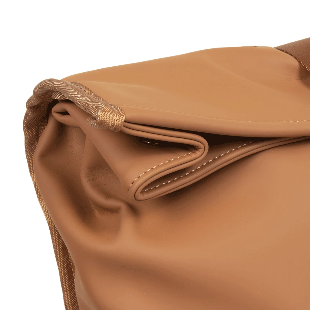 Bovenaan de tas zit een handvat, hiermee kan je de tas ergens ophangen.