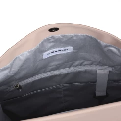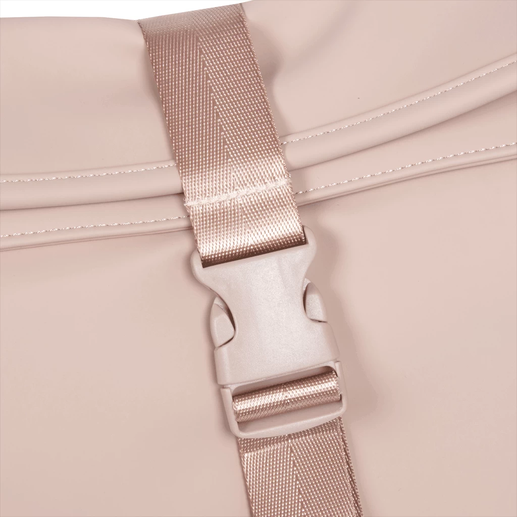 Bovenaan de tas zit een handvat, hiermee kan je de tas ergens ophangen.